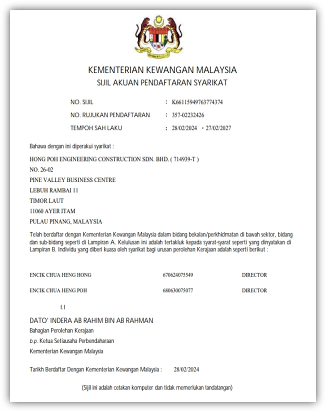 • Hong Poh Engineering Construction Sdn. Bhd.